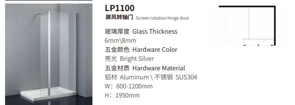 피보트 메커니즘을 가진 샤워 문: 알루미늄 또는 스테인리스 스틸 프레임 6mm 또는 8mm의 선택으로 유리 차원: 너비 (W) 600-1200mm에서, 높이 (H) 1950mm에 고정,얼음 유리 사용자 정의와